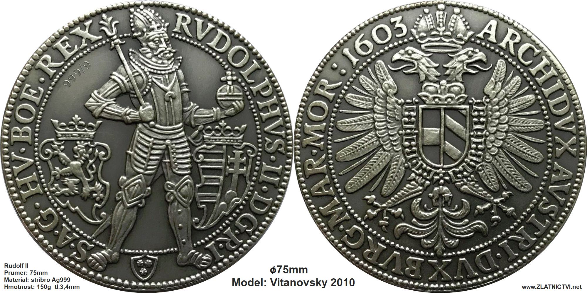 Pamětní medaile 75mm – RUDOLF II – velikosti