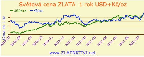 Světová cena zlata stále stoupá, investoři co mají napeno jsou jistě spokojeni, když po malých krůčcích sledují bod po boak to rose. Však pro nás je rozdíl zda investor má adresu New York nebo Praha, neboť český moudrý Honza musí pocítat zda dolar padá nebo ne, jak koruna posiluje. Však tentokrát Honza z Prahy a John z New Yourku mají radost soucasně nad svými nakoupenými zlaťáky, nebť světový kurz zlata roste.