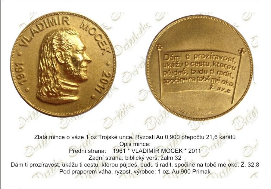 Pod praporem váha, ryzost, výrobce: 1oz. Au 900 Primák