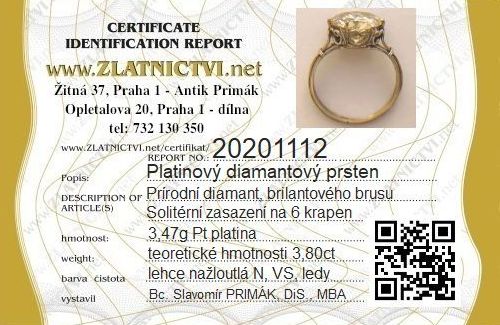 Certifikát k diamantovém prstenu.