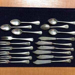 Stříbrné dezertní příbory sada 6ks lžičky vidličky nože Ag800 rok 1900-1920 punc FN
