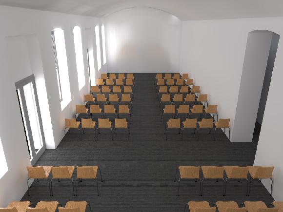 Přízemí – hlavní sál – 3d vizualizace – šedý koberec