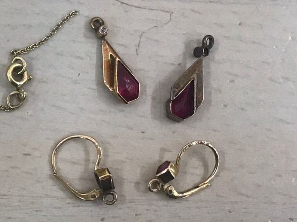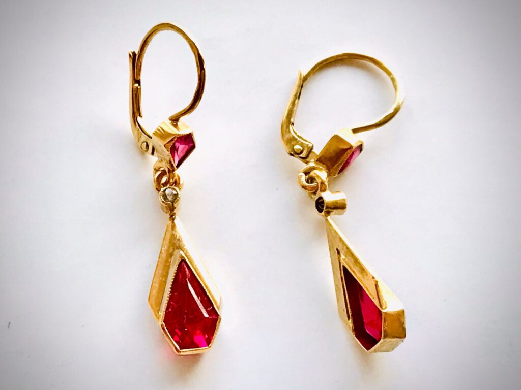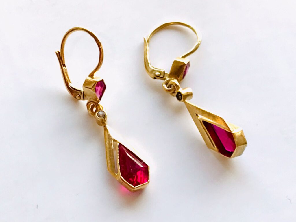 PŘED a PO – zlatnická oprava šperků – NAUŠNICE ArtDeco s červenými kameny