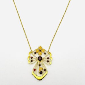 České granáty zlato 14kt 6,6g Au585 secesní náhrdelník 12 granátů