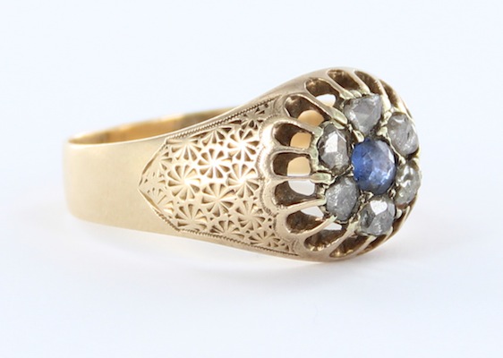 Starožitný zlatý diamantový prsten z devatenáctého století z růžového zlata Rakousko Uhersko
