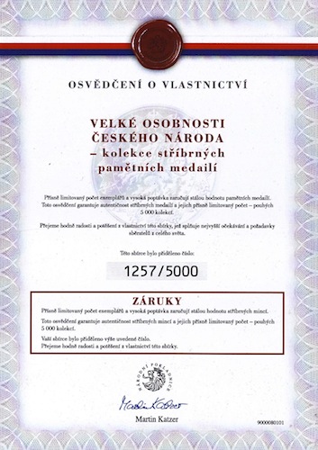 Pamětní stříbrné medaile z čistého stříbra (999/1000) z kolekce Největší osobnosti českého národa. Krásný design, ražené v omezeném počtu exemplářů. Ražbu této kolekce provedla Česká mincovna z ryzího stříbra Ag999. Výjimečnost medailí je v provedení ražby tzv. PROOF, tedy, že se razí leštěným razidlem a jejich kvalita podléhá velmi přísné kontrole. Autor návrhu známý český akademický sochař Vladimír Oppl, mimo jiné je též navrhl českou dvacetikorunu. Tyto medaile jsou raženy leštěným razidlem v provedení PROOF, proto je povrch zrcadlový, té nejvyšší sběratelské kvality. Takovéto medaile se uchovávají v původním pouzdru, aby nedošlo k sebemenšímu poškození jak hran, tak zrcadlovému efektu.