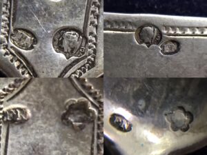Sada je puncovaná od výrobce, stříbrníka FN z období let 1900-1920 s použitím státních puncovních značek pro stříbro ryzosti Ag800 s pořadovým číslem 3. a to Diana a selka.