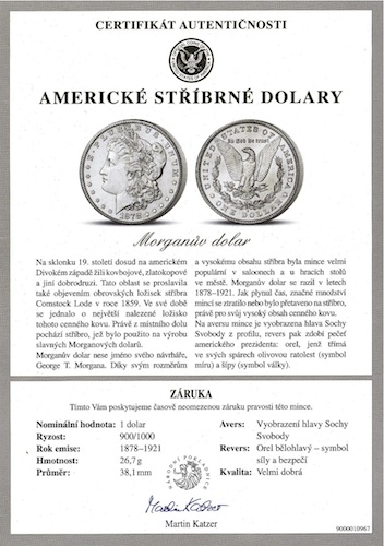 Americké dolary vydává bez výjimky Státní pokladna Spojených států amerických. Ta také zaručuje čistotu stříbra a dokládá, že se jedná o přísně limitovanou sérii.