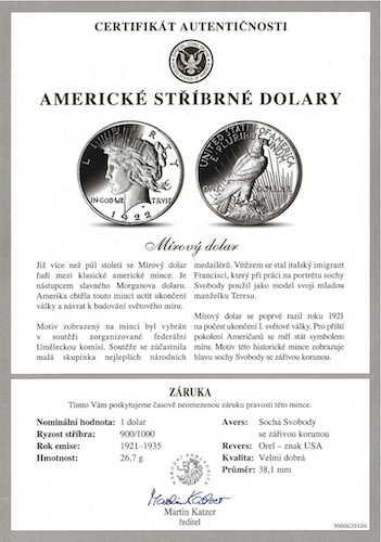 Americké dolary vydává bez výjimky Státní pokladna Spojených států amerických. Ta také zaručuje čistotu stříbra a dokládá, že se jedná o přísně limitovanou sérii.