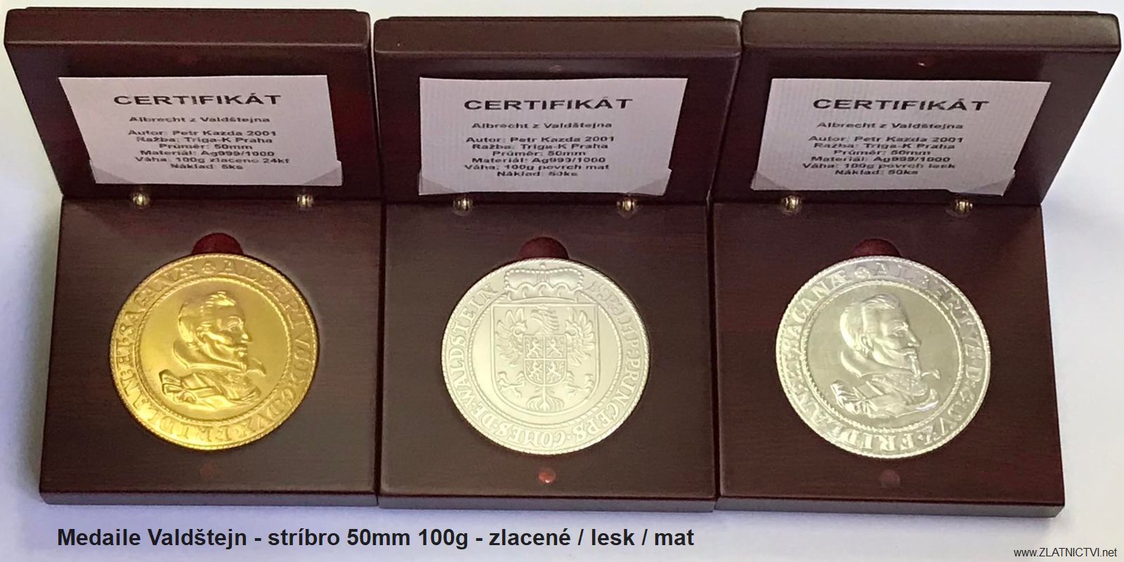 Další možné pamětní medaile, kde je Albrech z Valdštějna, jsou například zde: Zlatnictvi.net / Valdštejn