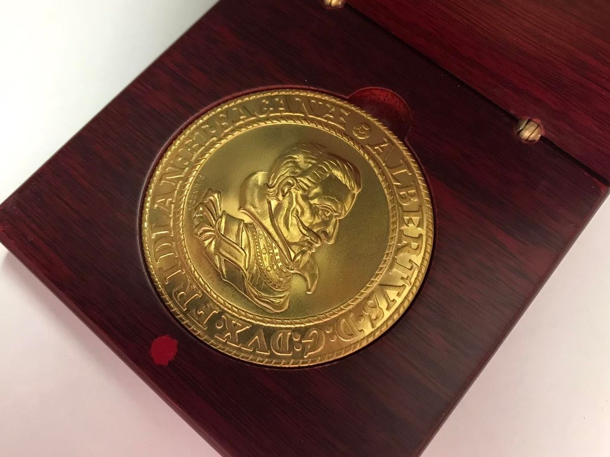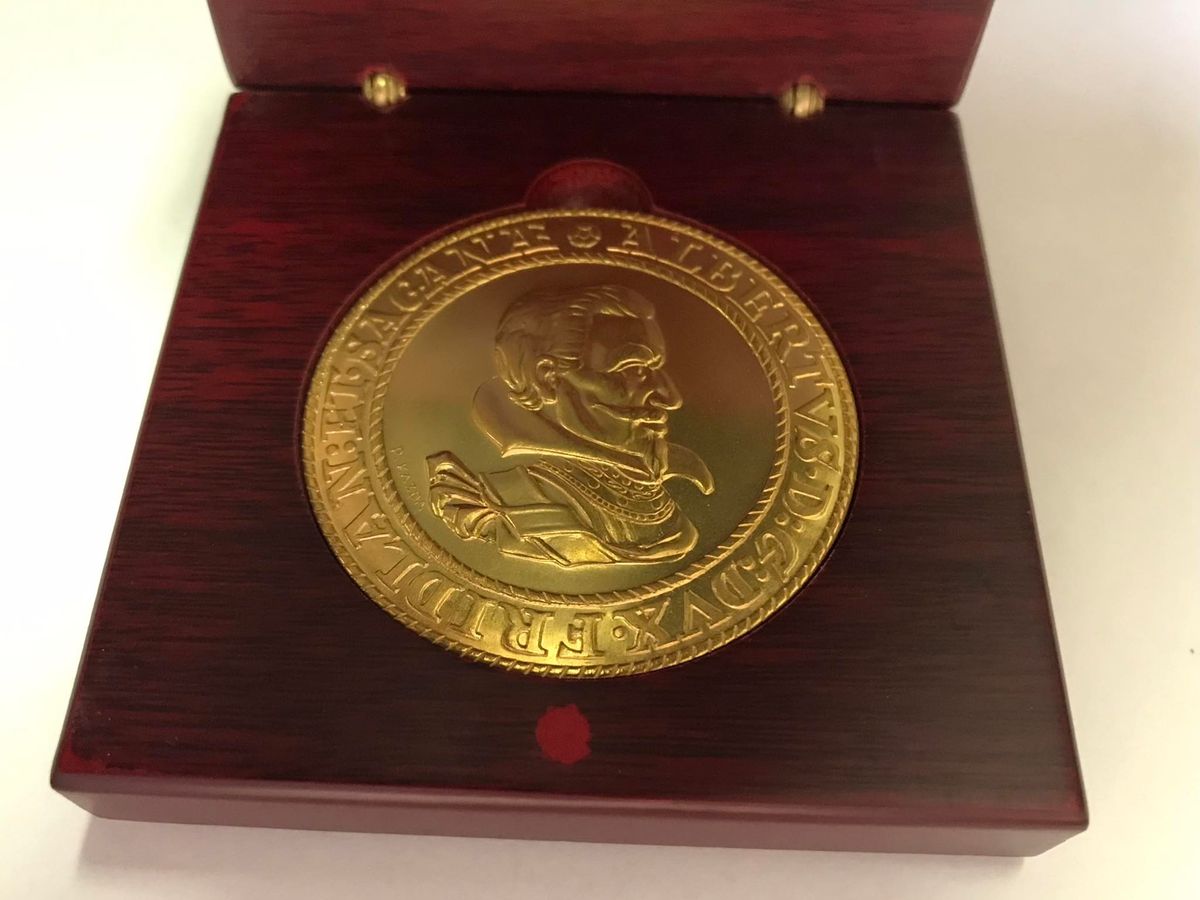 Zlatá pamětní medaile na počest Albrechta z Valdštějna
