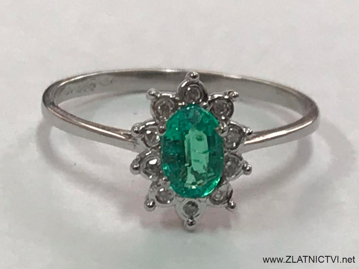 Prstýnek z bílého zlata se sm,aragdem a brilianty je možno upravit do požadované velikosti.