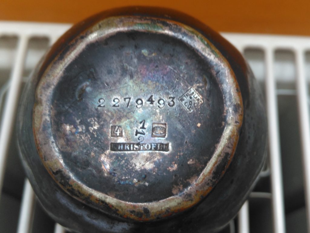 Důležitější jsou malá označení tedy malé puncy a nejdůležitější pro nás je výrobce, zde je Christofle, toto jídelní, kuchyňské zboží bývalo z alpaky, tedy obecného kovu.